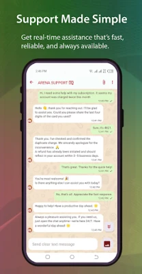 Im Kern bietet Arena intuitive Chat-Funktionen, die den persönlichen und Gruppenaustausch mühelos gestalten. Teilen Sie Nachrichten, Medien und wichtige Informationen in Echtzeit, um stets im Fluss der Kommunikation zu bleiben. Darüber hinaus öffnet Arena das Tor zu einer Fülle von Dienstleistungen: Erhalten Sie aktuelle Mitteilungen, wertvolle Einblicke und exklusive Angebote direkt von den Anbietern, die für Sie relevant sind. Diese direkte Informationsversorgung stellt sicher, dass Sie immer bestens informiert sind, ohne Umwege oder Suchaufwand.