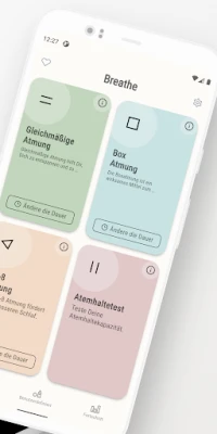 Breathe fördert Ihr Wohlbefinden mit drei bewährten Atemübungen. Entdecken Sie die beruhigende Wirkung des bewussten Atmens und erstellen Sie außerdem individuelle Atemmuster. Finden Sie Ihre innere Ruhe und verbessern Sie Ihr allgemeines Wohlbefinden.