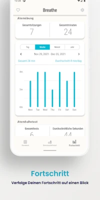 Verfolge deine Fortschritte detailreich und motivierend mit den intuitiven Diagrammen von Breathe, die dir helfen, deine Entwicklung zu visualisieren und deine Atemhaltekapazität mit dem speziellen Test zu überwachen. Damit du deine Routine nicht vergisst, ermöglicht dir Breathe die Einrichtung von Benachrichtigungen, die dich sanft an deine nächste Atemsession erinnern. Genieße den vollen Funktionsumfang von Breathe ohne Einschränkungen und erlebe, wie regelmäßiges Training dein Wohlbefinden steigert. Bei Fragen oder Anliegen steht dir das Team von havabee unter