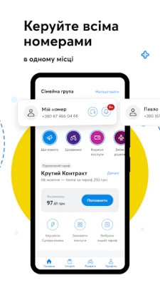 Мій Київстар ermöglicht Ihnen ein umfassendes Multi-Profil-Management: Fügen Sie Nummern von Familienmitgliedern hinzu, überwachen Sie deren Kontostände, wechseln Sie Tarife oder aktivieren Sie zusätzliche Dienste für Ihre Liebsten – alles mit nur wenigen Berührungen. Der Wechsel zu einem Vertragstarif ist dank der digitalen Vertragsunterzeichnung direkt in der App problemlos möglich, ohne einen Shop aufsuchen zu müssen. Auch der Umstieg auf eine eSIM oder die problemlose Übertragung Ihrer Rufnummer auf ein neues Smartphone wird zum Kinderspiel. Benötigen Sie eine finanzielle Brücke? Extrageld-Boni stehen Ihnen für die Kommunikation zur Verfügung und können flexibel zurückgezahlt werden. Zudem können Sie Anfragen für den Hausinternet-Anschluss stellen und deren Status verfolgen, mit Abdeckung in Großstädten wie Kiew, Charkiw, Lwiw und weiten Teilen der Ukraine.