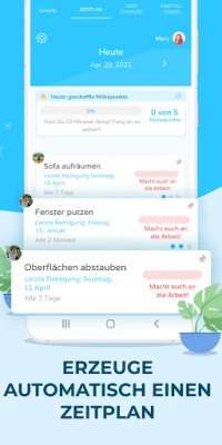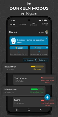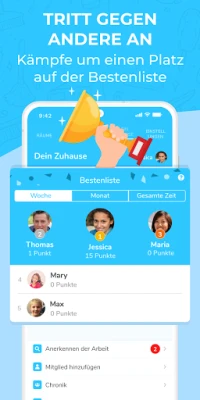Bleiben Sie motiviert und verfolgen Sie Ihre Erfolge mit einer klaren Visualisierung des Fortschritts. Jeder erledigte Schritt trägt sichtbar zur allgemeinen Sauberkeit bei und schafft ein befriedigendes Gefühl der Leistung. Für den spielerischen Ansporn gibt es zudem eine Bestenliste, auf der Sie sich mit Ihren Haushaltsmitgliedern messen können. Wer wird die engagierteste Person im Haushalt sein und sich den begehrten ersten Platz sichern? Diese interaktiven Elemente machen die Haushaltsführung zu einem gemeinschaftlichen und sogar unterhaltsamen Erlebnis.